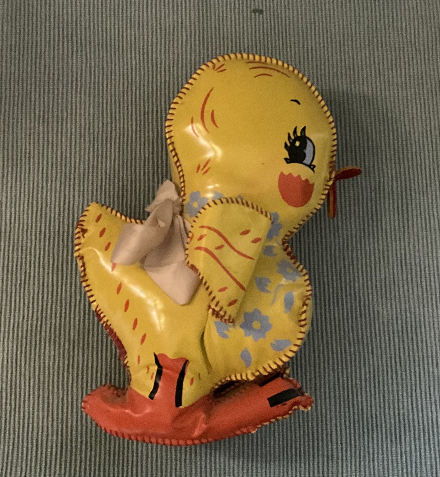 1960年代、オイルクロス製のヴィンテージのヒヨコ。大きさ:21.5cm。