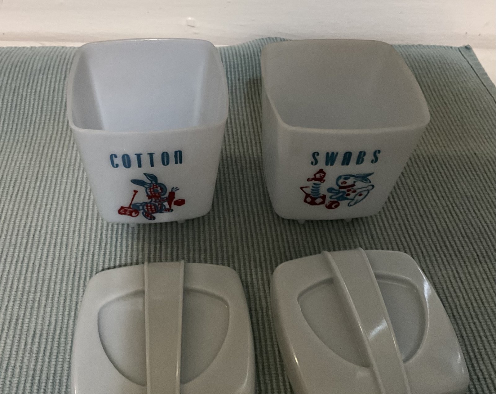 1950年代、Clarolyte社のベビーナーサリー・コンテナセット。高さ:8cm、幅:8cm。